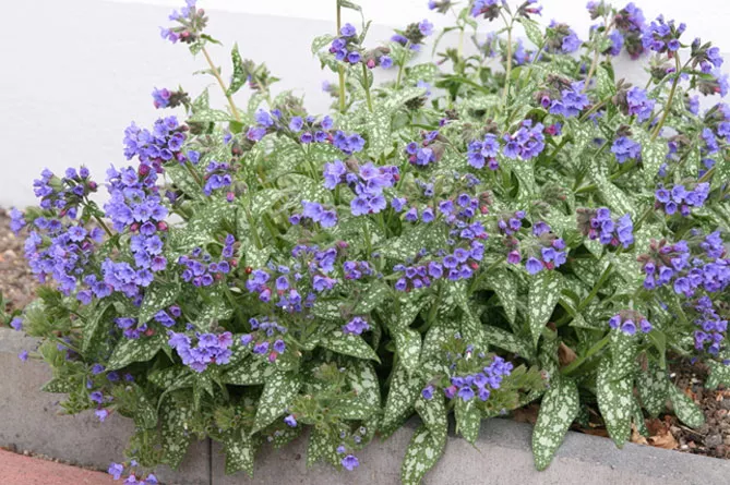 - «Опал» Opal – сорт утворює щільні кущики висотою до 15 см. Сріблясто-плямисті листки добре контрастують з квітами. Чудово виглядає в контейнерах, на клумбах, у ролі квіткового килима. Довгоцвітучий сорт (у середині квітня з'являються численні світло-блакитні квітки).