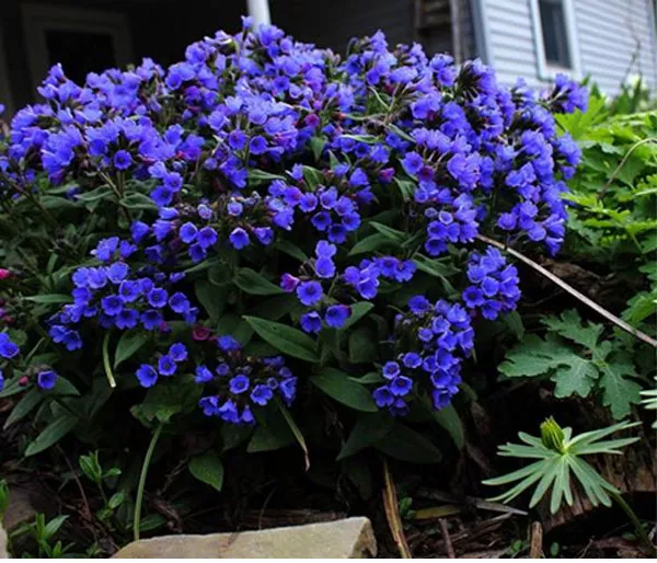 - «Блю Енсін» Blue Ensign – виростає у висоту приблизно до 25-30 см і 30-45 см у ширину, утворюючи ефектні компактні групи. Листя вузьке, ланцетне, темно-зелене, шорстке на дотик, залишається декоративним до перших заморозків. Цвіте з квітня по червень. Квіточки у вигляді дзвіночків, зібрані в рихлі волоті. Квітки в бутонах і відразу після розпускання кармінові, але дуже швидко набувають характерного синього забарвлення.