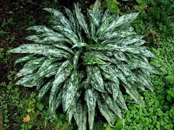 - «Леопард» Leopard – ґрунтопокривний багаторічник з красивою листкою з сріблястими крапками та чарівними квітами різного забарвлення. Виростає приблизно до 30 см у висоту та 60 см у ширину. Створює щільні скупчення ефектних, злегка опушених, еліптичних листків. Поверхня листкової пластинки темно-зелена, прикрашена нерівними сріблястими плямами. Цвіте з квітня по травень. Квітки маленькі, кармінові, з часом набувають синьо-пурпурового кольору. Багатоцвітучий сорт.
