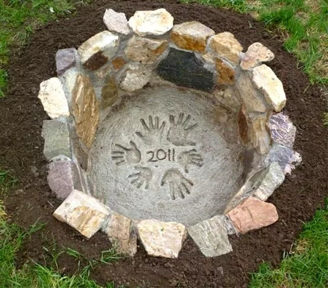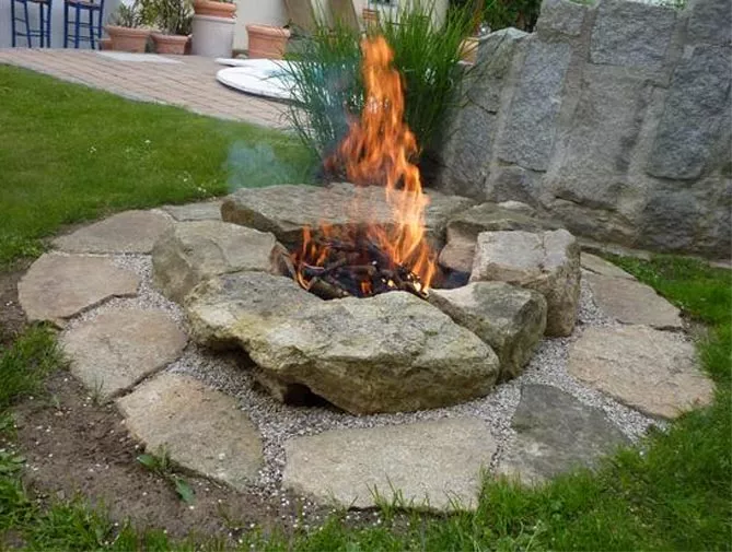 Найпростіший спосіб організувати місце для багаття на дачі своїми руками – виділити звичайне коло голої землі, що обмежить поширення полум'я. Посередині кола можна вирити невелику ямку для полегшення контролю над вогнем. Але рослинність навколо буде спалена, а на місці вогнища залишиться пуста, неестетична ділянка. Це рішення не надто безпечне, вогонь може легко поширитися на сусідні рослини, кущі, дерева, предмети – тому багаття вимагатиме постійного догляду та обережності.