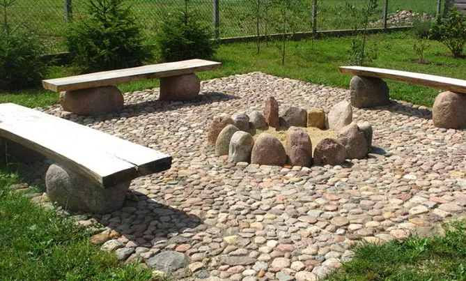 - Вкінці подбаємо про естетику – оточуємо вогнище кругом гарних каменів, покриваємо область навколо гравієм.