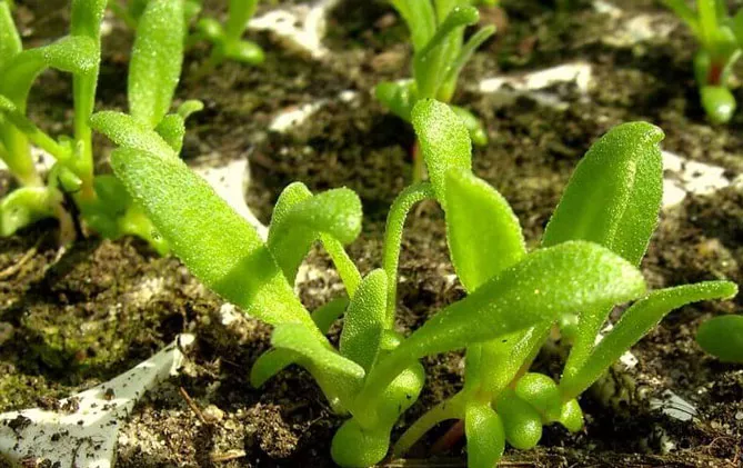 Коли сіянці дадуть кілька листочків, їх пікірують по кілька штук в окремі горщики.