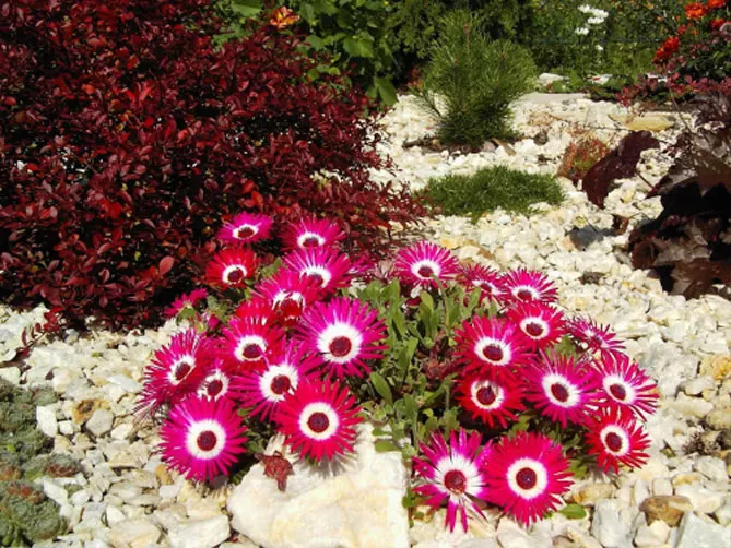 Невисокі стебла, тривалий період цвітіння, яскраві квіти і дуже низькі вимоги до вирощування роблять мезембріантемуми незамінними квітами на балконах і терасах, а також на сонячних ділянках в саду.