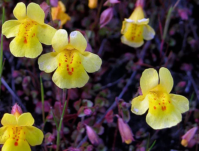 Витривалий багаторічник жовтий мімулюс (Mimulus luteus) родом з Чилі. В природі зустрічається вздовж річок, у їхніх верховодах, дренажних канавах, над водоймами, на вологих луках, торф'яних болотах.