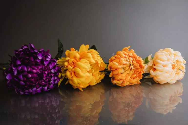 Залежно від кількості рядів пелюсток у суцвітті, садівники ділять хризантеми на: