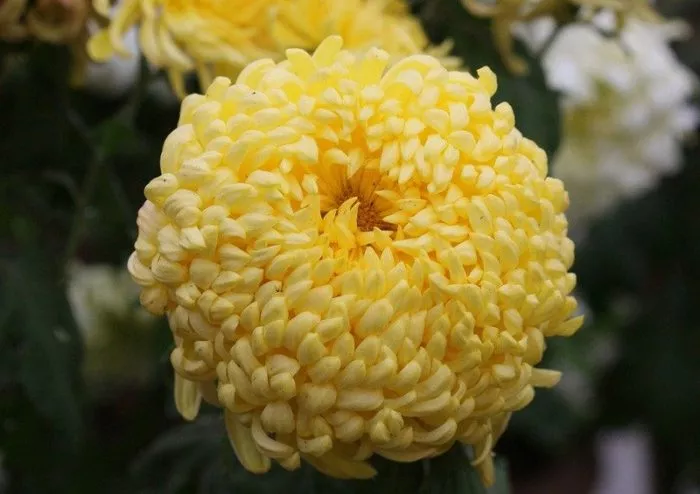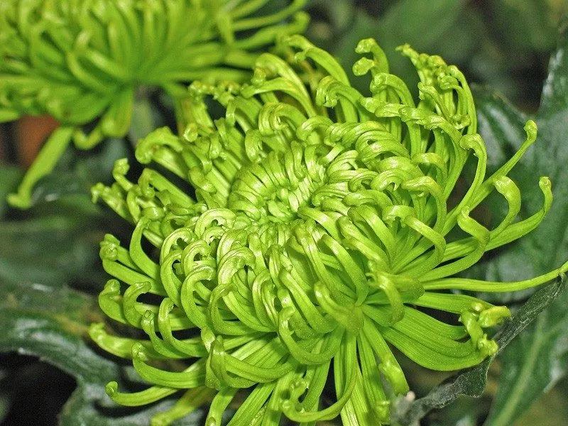 - Велика біла хризантема створює великі, білосніжні квіти діаметром до 12 см. Зовнішні пелюстки відхиляються, центральні пелюстки утворюють кулю. Цвіте з жовтня. У теплі зими може цвісти до грудня. Потрібен вологий ґрунт.
