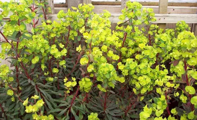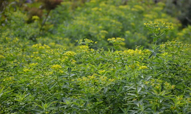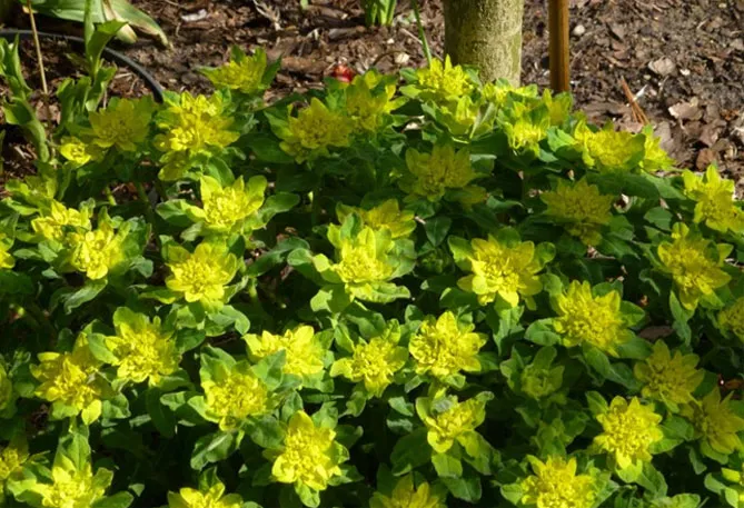 Молочай миндалевидный (Euphorbia amygdaloides) многолетний, часто ведет себя как двухлетнее растение, после цветения может погибнуть. Цветет весной и будет отлично смотреться в натуралистических композициях.