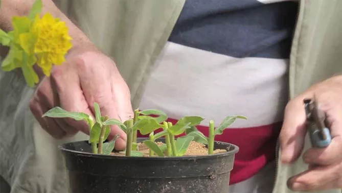 Хорошие результаты приносит размножение молочая черенками (побеговыми, корневыми). Для этого отрезают кусочек стебля или один из побегов, помещают его в торфяной субстрат и держат в легкой влажности, периодически слегка распыляя воду из пульверизатора. Ящик с черенками нужно накрыть пленкой, чтобы внутри поддерживалась повышенная влажность воздуха. Пленку нужно снимать и проветривать рассаду один раз в день, чтобы не появилась плесень. Когда появятся новые зеленые побеги и саженцы укоренятся, можно пересадить их в отдельную емкость.