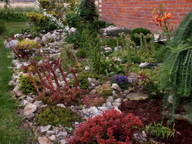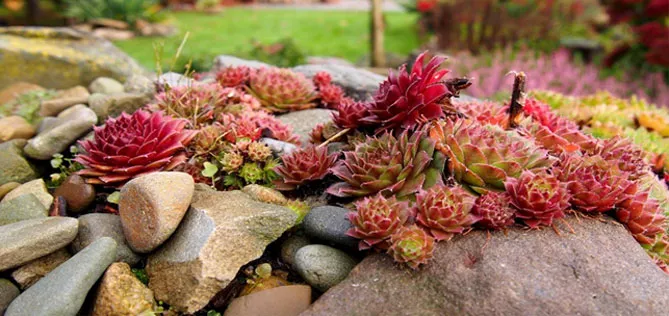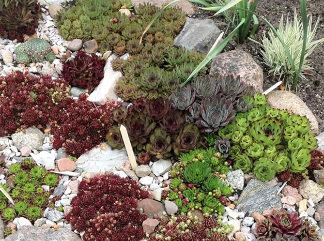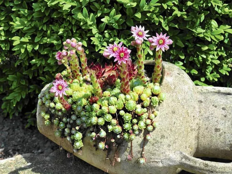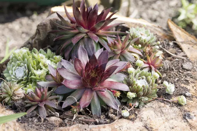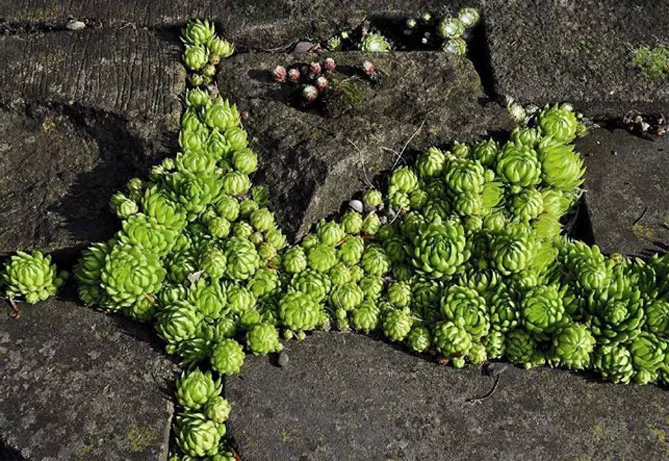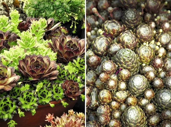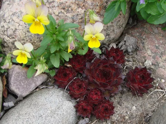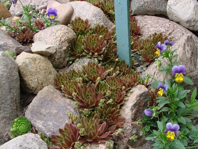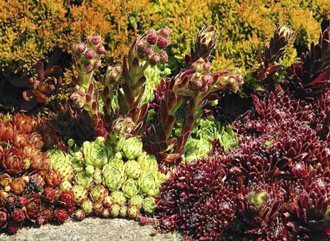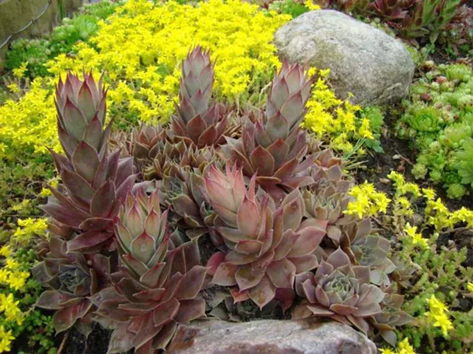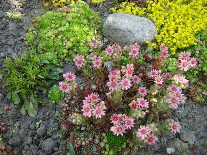 Більші сорти можна оточити дрібними сортами. Також можна комбінувати молодило з наступними рослинами: