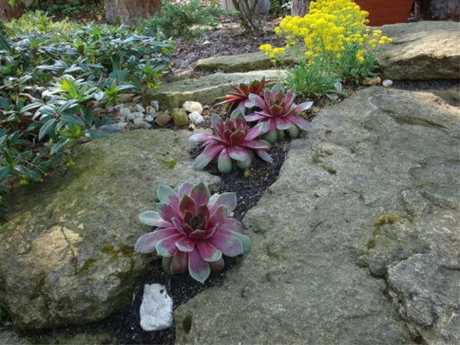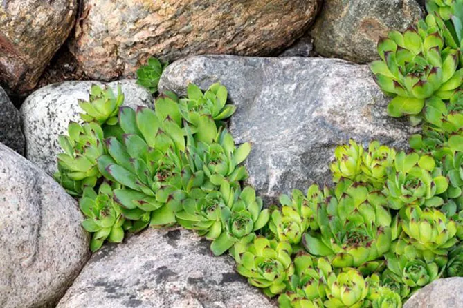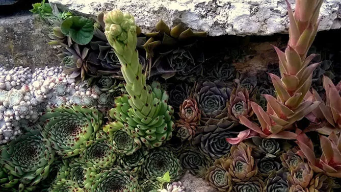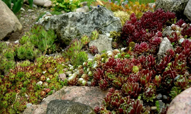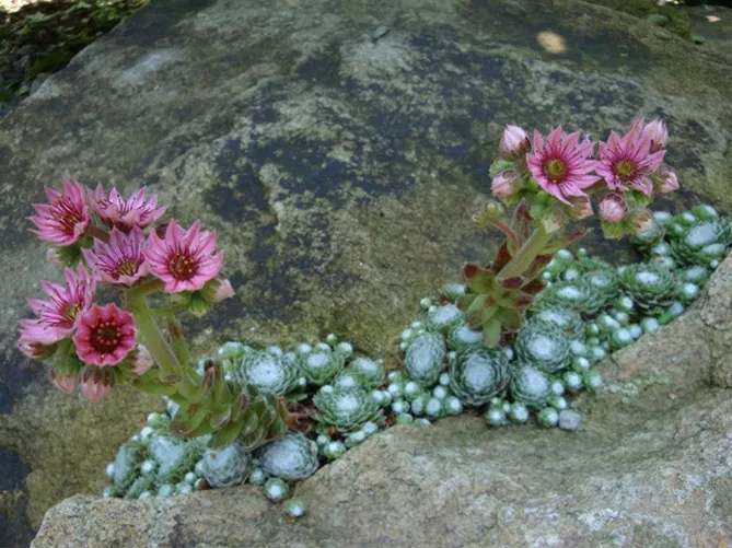 У кам'янистому саду або на квітковій стіні (навіть на вертикальній стіні) варто посадити кілька різнокольорових видів і сортів молодила.