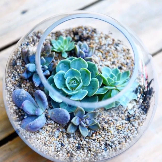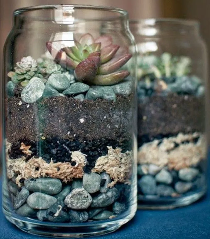 Також рослини використовуються для створення мініатюрних пейзажів у скляній вазі, які стануть чудовим прикрашенням обіднього столу або комода. Посадені в дрібний посуд або керамічні чаші разом з декоративним камінням вони добре виглядають на підвіконнях будинку та на відкритому повітрі. Дуже модними і чарівними є композиції з молодила, посаджені у великих скляних банках на кам'янистий ґрунт.