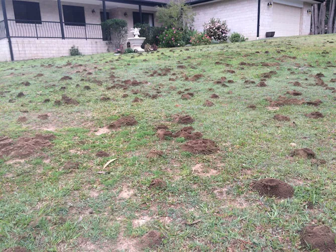 - Можуть знищити декоративні клумби, городи і газони – коли риють підземні коридори, пошкоджуючи коріння, кореневища, бульби рослин. Коридори, тунелі додатково сушать грунт.