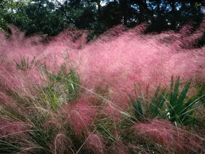 У наших садах зазвичай вирощують злак мюленбергія волосовидна або оленяча трава (Muhlenbergia capillaris, син. rigens).