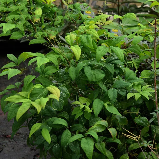 Листя нандини красиве, барвисте, в м'якому кліматі зберігається взимку, прикрашаючи сад протягом усього року. Світле листя, що змінює колір залежно від пори року, є цінною перевагою цього чудового чагарника. Вічнозелений або напіввічнозелений, він створює фон з дуже ніжної зелені, привабливої цілий рік. Нандина втрачає листя, якщо температура повітря опуститься нижче -15 °C.