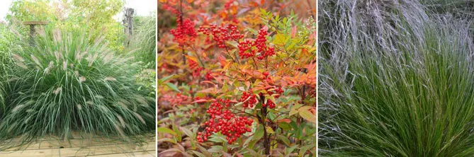 Плодоношення нандини декоративними ягодами червоного кольору буде добре поєднуватися з: