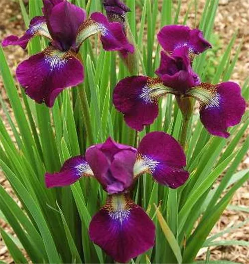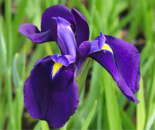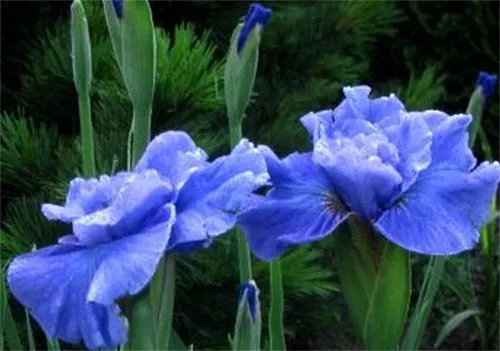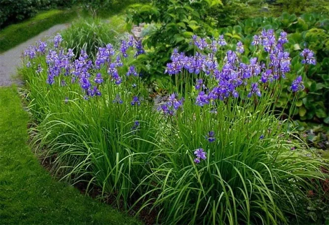 | Сибірські сорти синьо-блакитного кольору – квіти цвітуть з липня по серпень. Пелюстки квітів дрібніші, але з більшою кількістю суцвіть. Один з найцікавіших сортів – Перріс Блю (Perrys Blue). Цей сорт дуже рясно цвіте блакитними весняними квітами (цвітіння: травень-червень). Рослина повністю морозостійка. Її можна посадити на квітниках. Чудово виглядає біля ставка. |