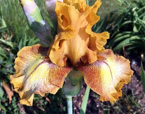 | Холден Клаф (Holden Clough) – екзотичний лжеаїровий півник, жовті пелюстки покриті густими і характерними жилками фіолетово-коричневого відтінку. Сорт з'явився в селекції в 70-х роках минулого століття в розпліднику Холден Клаф на Британських островах. | ![]() |