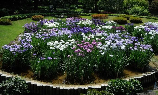 Японські півники – це рослини безбороді. Вони зазвичай досягають висоти 1 метр, цвітуть досить пізно (липень-серпень). Суцвіття японських півників має трохи іншу форму, ніж у інших видів, воно сплюснуте, має менші центральні пелюстки.