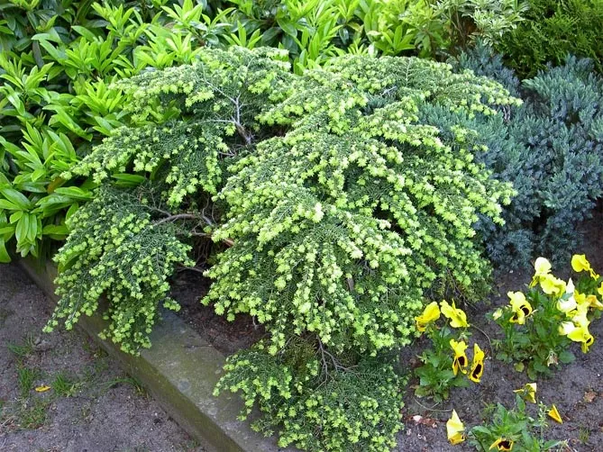 - щоб зробити склад клумб цікавим і різноманітним, варто посадити хвойні рослини для саду, які віддають перевагу тінистим місцям, наприклад, тис.
