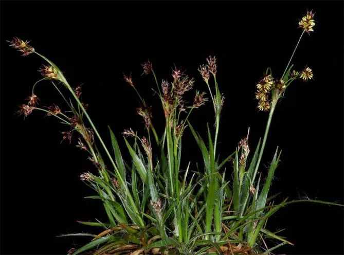 Лісова ожика - вічнозелена рослина з листям із довгим волоссям.