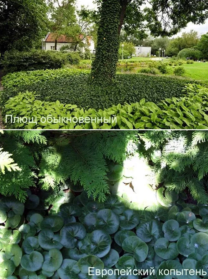 Ці рослини висувають дуже низькі вимоги до освітлення. Плющ звичайний, європейський копитень і барвінок звичайний краще ростуть на родючому, вологому ґрунті, але також терплять гірше становище. Ці рослини, безумовно, витримають навіть дуже затінені місця.