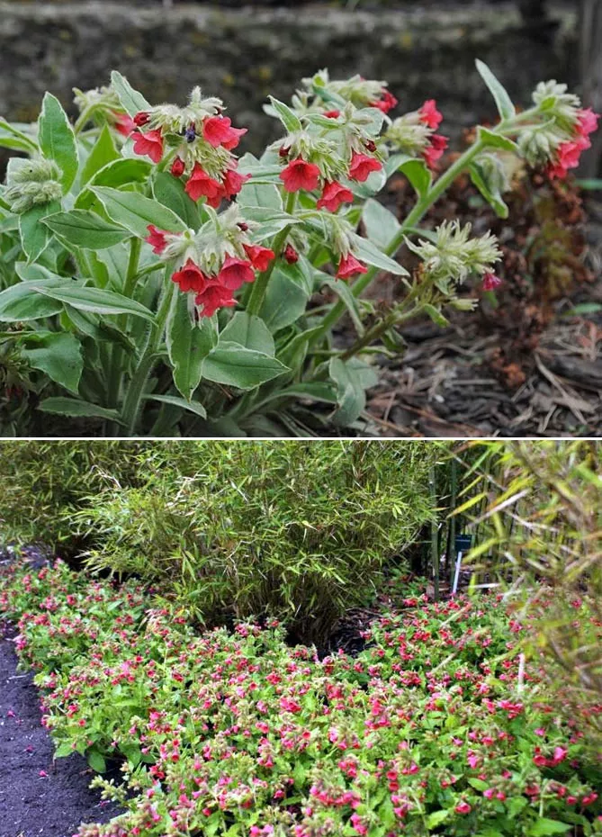 Медунка цукрова - рослина для напівтінистих і тіньових місць. Любить вологий і родючий ґрунт. Має декоративне, темно-зелене листя, прикрашене контрастними біло-срібними плямами. Квітки спочатку мають коралово-червоний колір, при розкритті стають рожевими, блакитними або фіолетовими. Цвіте з березня по квітень. Рослина утворює щільні, густі кущики, що задерняють землю.