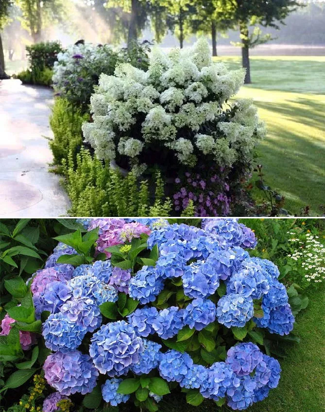 Красиво квітучий чагарник гортензія може рости в тінистих місцях, хоча в таких умовах менше цвіте. Краще в тіні росте Гортензія волотиста.