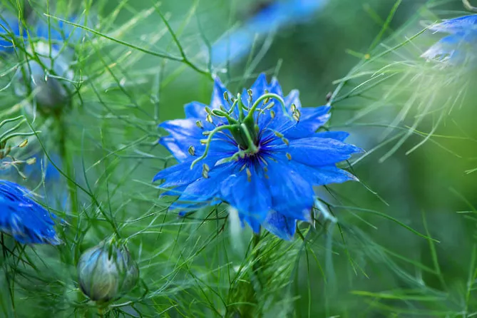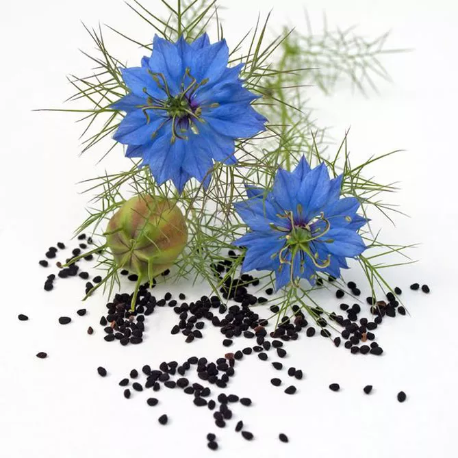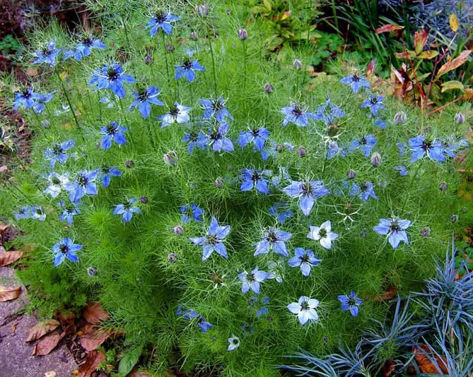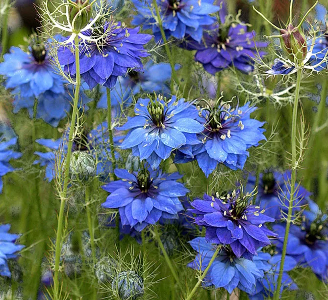 Цікаві сорти дамаської чорнушки з блакитними і синіми квітками: