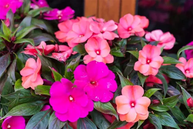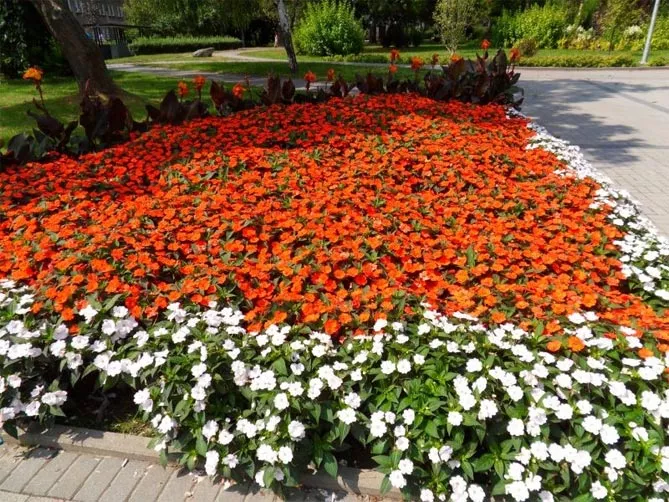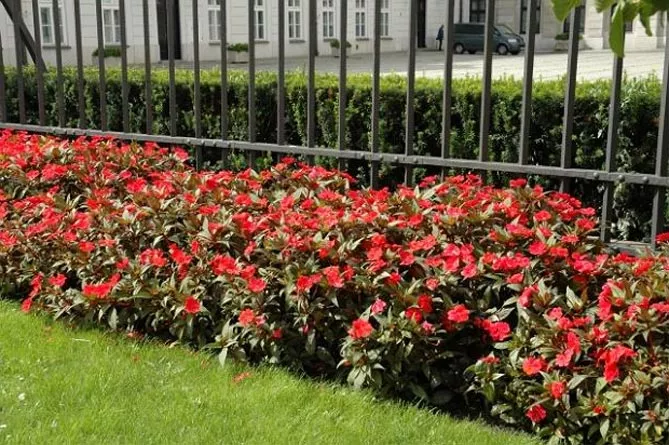 Бальзамін або неторопа (Impatiens) – бордюрний однорічник. Карликові однорічні низькорослі сорти бальзаміну виростають до 15 см. Квіти бувають прості та махрові в широкому діапазоні кольорів (навіть двоколірні). Неторопа, посаджена на бордюрах, може цвісти з травня по вересень. Це хороша пропозиція для оформлення країв газонів і меж у частково затінених ділянках.