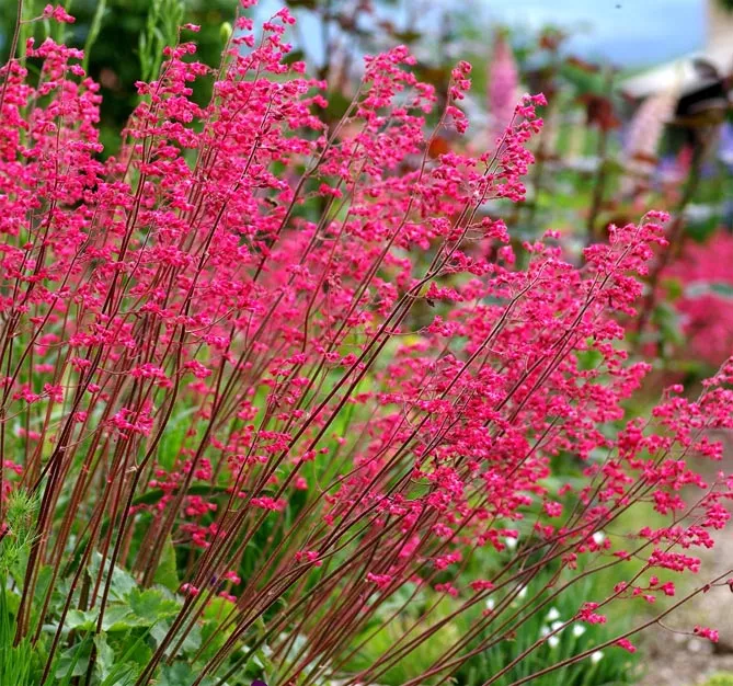 Heuchera micrantha – хороша бордюрна рослина для високих рабаток і декорування поверхні. Вічнозелена багаторічна рослина досягає зросту 60 см. Прикраса гейхери – кучеряві зелені або темно-фіолетові листки. Цвіте рослина з липня по серпень. Суцвіття волотеподібні складаються з маленьких, кремових або рожевих квіток.