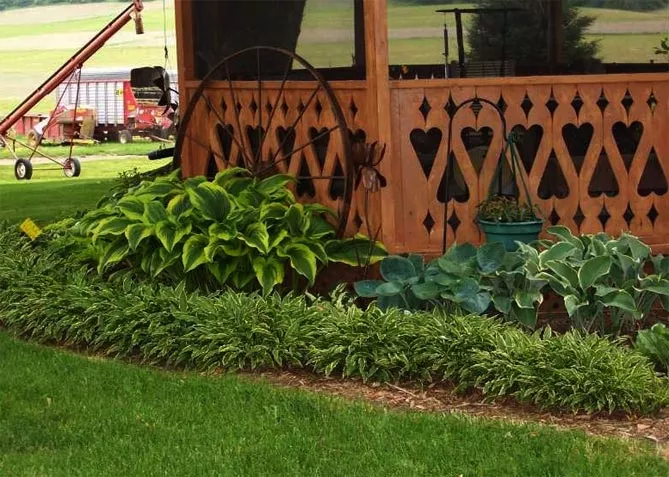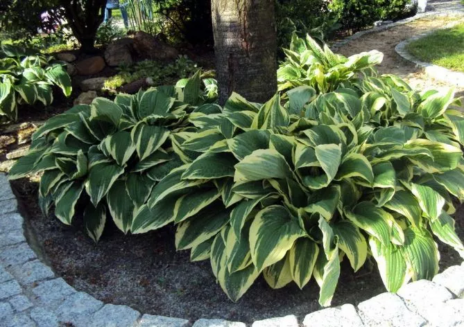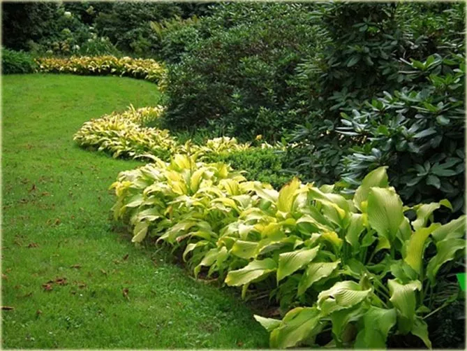 Для бордюрів і клумб варто вибирати низькі сорти хости (Hosta). Рослина особливо корисна для прикраси затінених місць. Хоста добре працює як обводка для газону, дерев, сформованих чагарників.