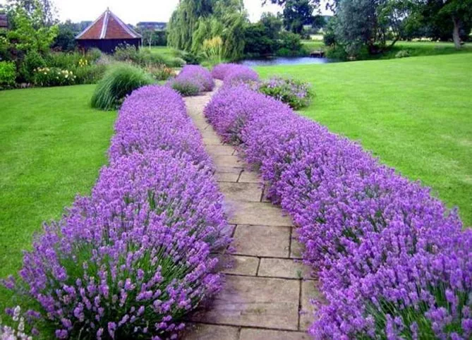 Популярна рослина для садів в стилі прованс – лаванда (Lavandula). Це один з найкрасивіших видів низькорослих квітів-багаторічників для створення квітучих бордюрів вздовж стежок та інших поверхонь. Лаванда зачаровує своїм зовнішнім виглядом, приємним запахом. Цвіте бузковим або фіалковим відтінком з липня по серпень. Лаванда досягає висоти 60 см. Деякі сорти лаванди морозостійкі.