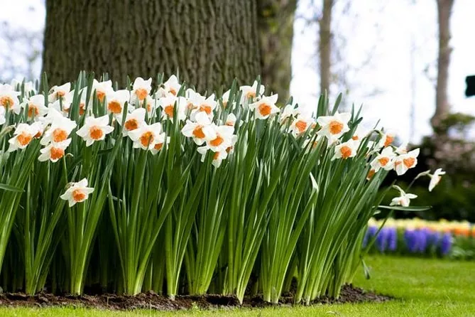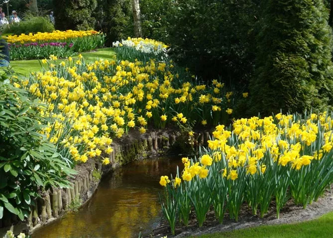 Нарцис (Narcissus) – один з найчастіше використовуваних на обводках цибулинних рослин. Окремі види та сорти різняться за розміром (зазвичай 20-40 см) та зовнішнім виглядом квітів (білий, жовтий, помаранчевий). Це весняне прикраса саду – цвіте нарцис з квітня по травень.