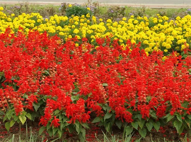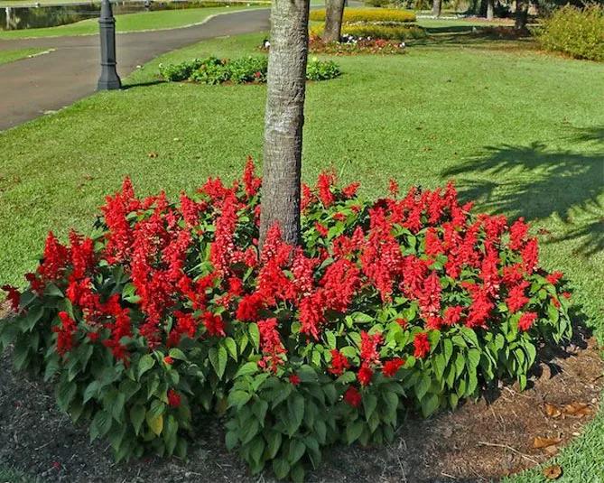 Декорativна шавлія блискуча або сальвія блискуча (Salvia splendens) росте до висоти 20-40 см, любить сонячні місця. Найпопулярніша червона шавлія, але можна вирощувати сорти з білими, лососевими або фіолетовими квітами. Цвіте з червня по вересень. Шавлія незамінна на великих квітниках і як бордюрна рослина.