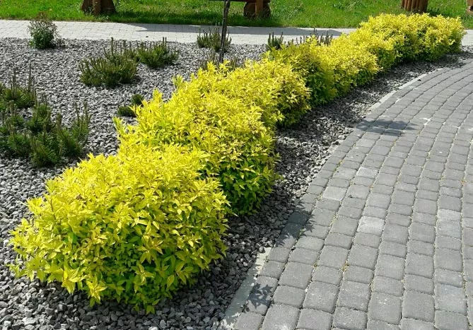 Інша популярна група – багаторічні чагарники. Лаванда та Бруслиник Форчуна виглядають дуже привабливо у вигляді бордюрів. Однак слід подбати про правильну обрізку, тоді чагарники виглядають акуратно. Бордюри з чагарників низького зросту дуже ефектні, надзвичайно довговічні. Найпоширеніші варіанти – самшит і низькі сорти барбарису. Залежно від сорту, ці кущі мають одноколірне або двоколірне листя.