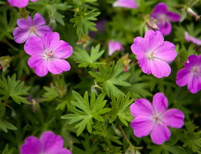 Geranium sanguineum – багаторічна трав'яниста рослина цвіте з травня по вересень. Цікаві наступні сорти: