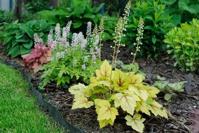 Гейхера (Heuchera sanguinea) – бордюрні багаторічні квіти, серед яких є низькорослі та карликові сорти.