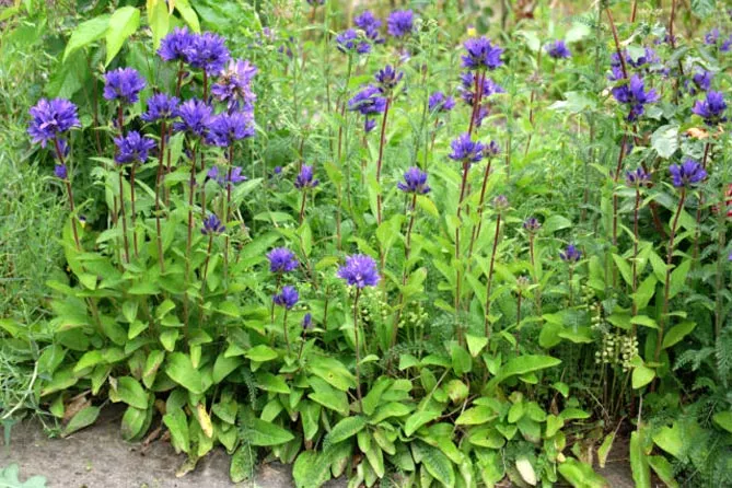 Campanula glomerata – карликова різновидність дзвоника, що досягає висоти 25 см з темно-пурпурними суцвіттями на жорстких пагонах. Рослина не любить застій води. Цвітіння починається в червні, триває до кінця серпня. Привабливо виглядає сорт Нана Альба з білими квітками.