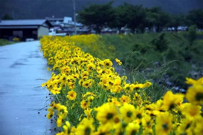 Кореопсис (Coreopsis lanceolata) – створює рихлі пагони, довжиною 40 см. Це багаторічна рослина з великими жовтими квітами з коричневим акцентом біля основи пелюсток. Цвітіння відбувається багаторазово з травня по жовтень. Це рослина з дуже маленькими вимогами.