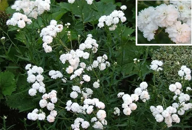 Деревій (Achillea ptarmica) цвіте в червні-липні. Після цього періоду суцвіття слід зрізати, щоб у разі теплої осені насолодитися повторним інтенсивним цвітінням. Пишні білі суцвіття деревію виглядають чарівно і тонко на тлі кущів. Багаторічник добре росте на родючому, вологому ґрунті, на сонці та в напівтінистому положенні.
