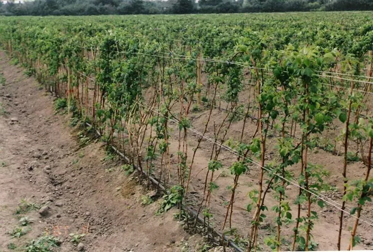 Необхідно регулярно видаляти листя та гілочки, вкриті мікозом або борошнистою росою. Малина росте вертикально до 2 м у висоту, і виглядає не дуже естетично. В саду кущ утворює хаотичні зарості. Якщо ви посадили кілька рядів поспіль, потрібно подумати, яким чином збирати урожай, щоб не доводилося проходити крізь зарості туди і назад. Малину зручно вирощувати на підпірній стінці. Опори можуть бути штучно виготовлені – потрібно вбити кілки в землю і розтягнути 2 ряди подвійного або одинарного дроту на висоті 0,5 і 1 м.