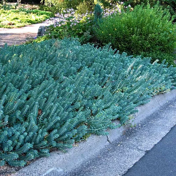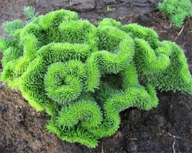 - «Кристатум» – сорт росте до 25 см у висоту. Характерні риси – сірувато-зелене зморшкувате листя та стебла, що нагадують гребінці. Видалення сильно ростучі пагони дозволяє зберегти цікаву форму. Чудово виглядає в альпінаріях, на окраїнах клумб – з іншими квітучими багаторічниками та для покриття великих садових поверхонь. Віддає перевагу піщаній основі зі слаболужним та нейтральним pH. «Cristatum» цвіте з липня по серпень. У горщиках є оригінальною прикрасою балконів та терас.