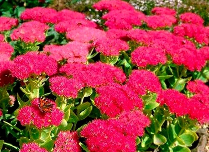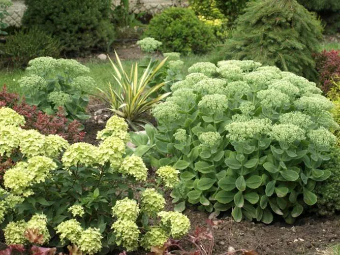 Sedum Spectabile має безліч різновидів, зазвичай пурпурового та червоного кольору. Нещодавно з'явилися різновиди з білими квітами. Вид чудово підходить для рокаріїв.