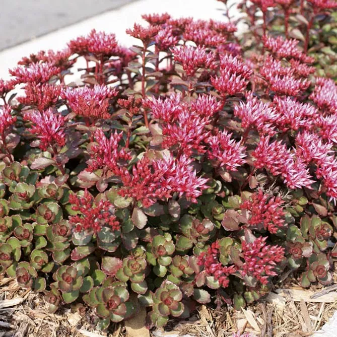 - «Fuldaglut» – сорт відрізняється коричнево-червоним кольором листя. Якщо рослині забезпечити сонячне положення, простір саду прикрасять яскраво забарвлені листки. У затінених місцях рослини стають зеленими. Багаторічник лежить на землі, суцвіття виростають до 15 см. В літні місяці (липень-серпень) з'являються зірчасті темно-рожеві квіти. Сорт «Fuldaglut» чудово виглядає в альпінаріях, для озеленіння стін, покриття великих площ саду. В період цвітіння прикрашений рожевим квітковим килимом.