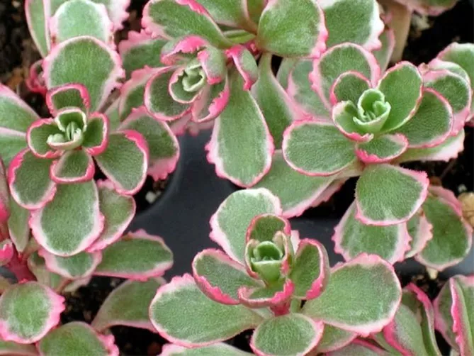 - Очиток кавказький «Триколор» – багаторічник, висота пагонів – 5 см. Відрізняється оригінальним кольором листя «триколор» – зелений, з білими та червоними краями. Блідо-рожеві квітки з'являються на повзучих пагонах у липні-серпні. «Триколор» віддає перевагу сонячним позиціям, сухим, піщаним ґрунтам з нейтральною реакцією.