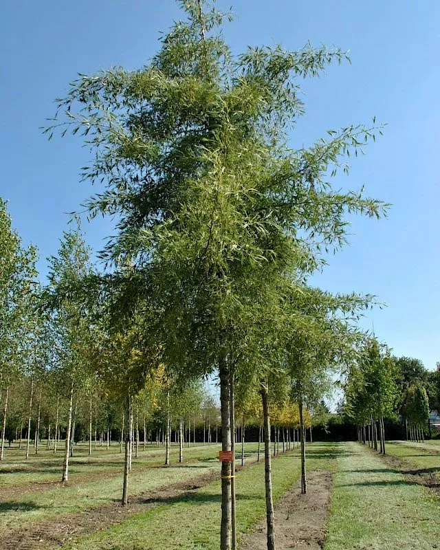 Рослина досягає висоти 30 метрів, кора темно-коричнева, шорстка, вкрита сіткою дрібних тріщин.
