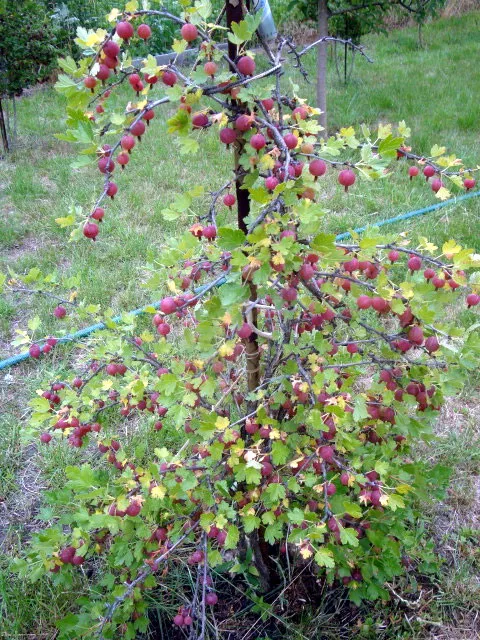 На одному кущі сорту аґрусу Колобок формуються ягоди різного розміру. На фото добре видно, що поруч дозрівають середні плоди масою 3 г та великі, по 4,5-8 г.