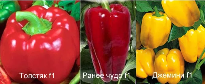 Джемини f1, Ранее чудо f1, Толстяк f1 – разновидности с высокими характеристиками устойчивости к неблагоприятным воздействиям. Они прекрасно переносят низкие температуры, неустойчивый климат и погодные катаклизмы. Перчики при созревании отличаются выдающимися размерами и весом. Плодовая стенка очень сочная, с характерным хрустом.
