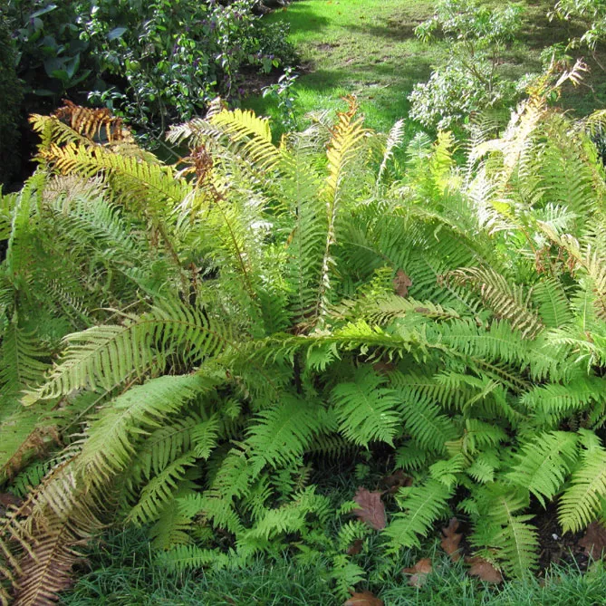 Величественный папоротник Чистоуст величавый или королевский, царский (лат. Osmunda regalis) может достигать высоты 2 метра! В России растет в Краснодарском крае. Осенью приобретает великолепные цвета. Летом выделяет споры. Произрастая естественным образом на берегах рек, он нуждается во влажной почве, будет расти на краю пруда. Не любит известняковую местность.