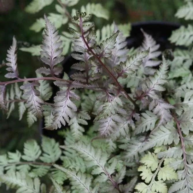 Кочедыжник ниппонский (лат. Athyrium niponicum) отличается декоративными листьями в красных тонах или с серебристым налетом.